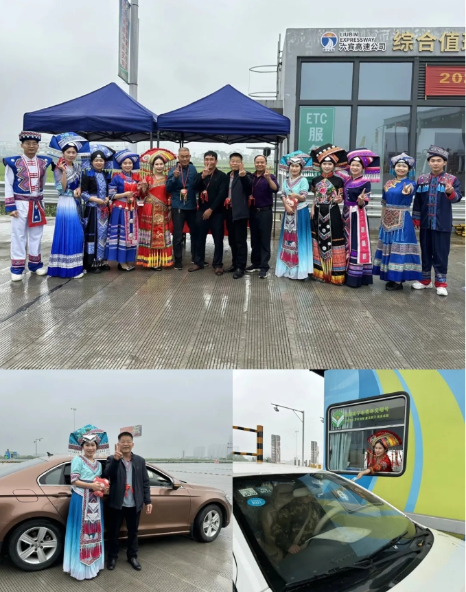 在六賓高速賓陽南收費站,六賓高速公司的志愿者們身穿民族特色服裝,化身高速公路上的“阿哥”“阿妹”,在提供出行服務(wù)的同時,為過往司乘人員送上了滿滿的祝福以及具有民族特色的繡球、香囊,形成收費站上一道靚麗的風(fēng)景線。